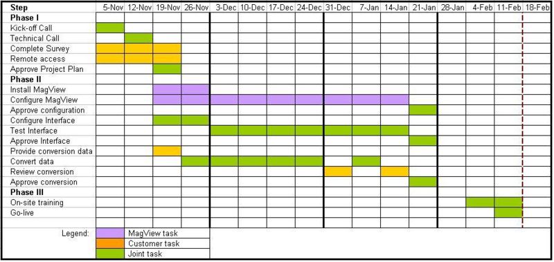 ERP implementations often consume more time and money than expected. The average total implementation time for the largest third of businesses should be targeted for completion in nine months to two years. Small to medium business implementations should be targeted for completion within three to nine months. Those timeframes reflect the point when people within the business usually start to lose enthusiasm and energy. At the beginning of the project, everyone is focused and there is a real groundswell of energy that the project manager needs to harness.